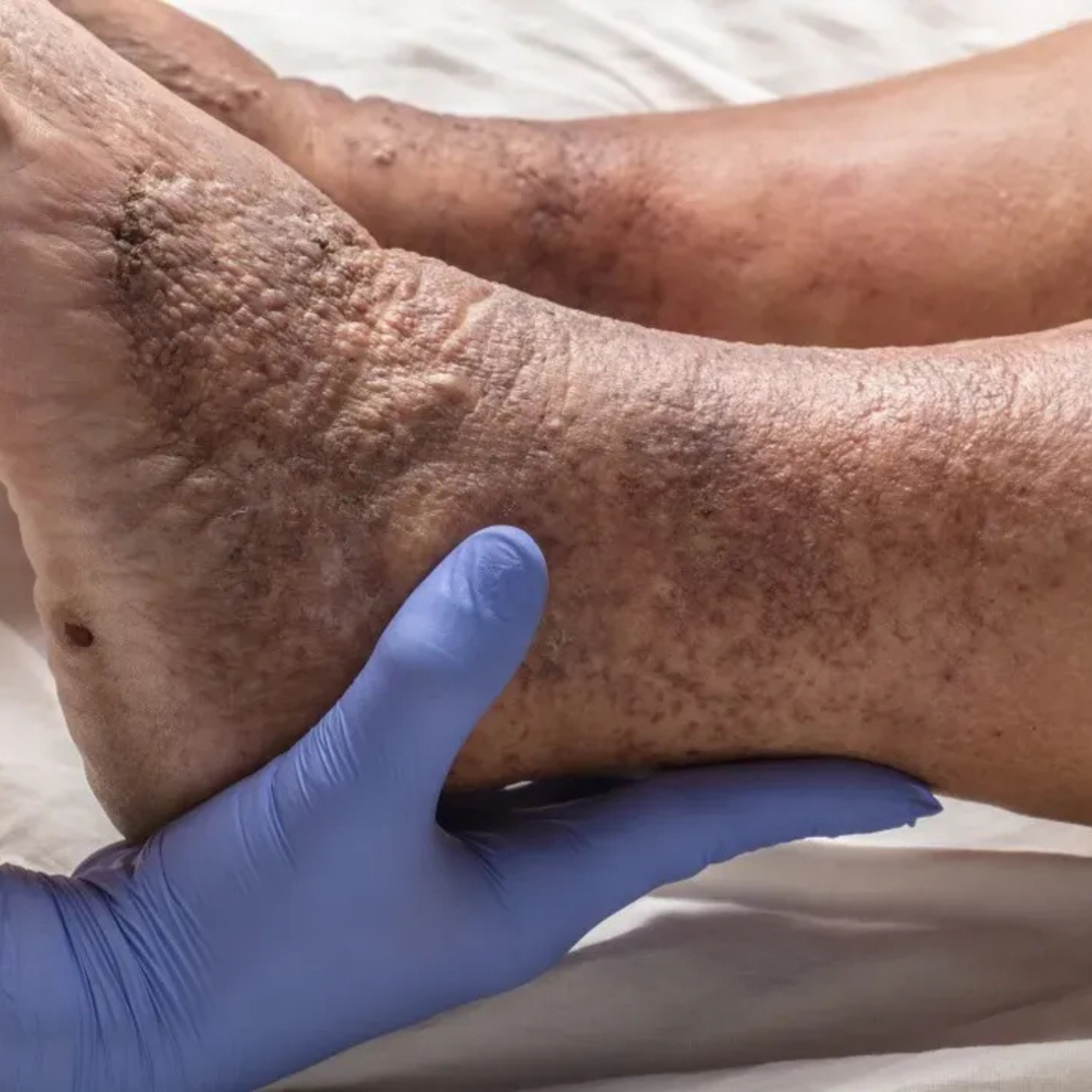 • Skin changes and ulceration in advanced cases